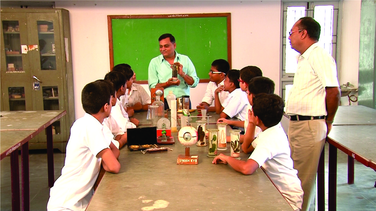 In English medium school building there are two computer labs. One lab is having 21 computers while second lab is having 20 computers. So that 40 students can sit at a time to work on computers. These computer labs are used by English as well as Gujarati medium students. The numbers of teachers, teaching computer are three in Gujarati medium and two in English medium. These computers have study-related software. Almost all computers are in working order. Mr. P.S. Shah is the Lab Director and two Lab Assistants are working under his guidance. Syllabus of computer subject is as under: